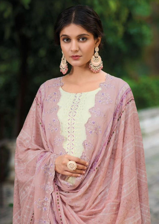 Heavy embroidered Suit with Embroidered Dupatta- Beige Green Ombre