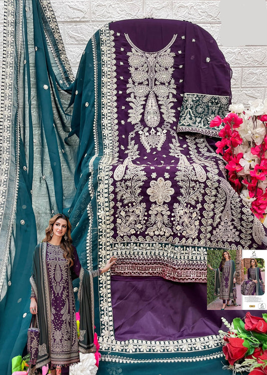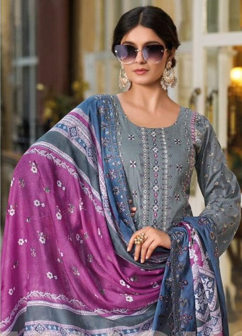Heavy embroidered Suit with Embroidered Dupatta- Grey