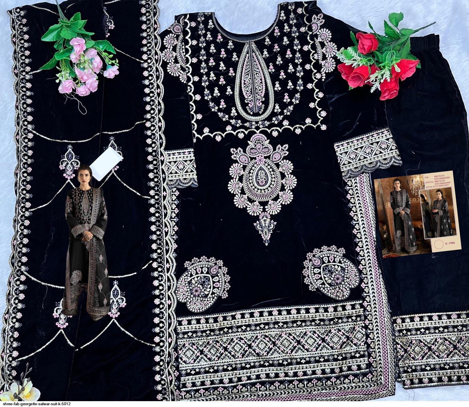✔ Top: Unstitched georgette fabric with heavy embroidery, allowing for custom tailoring